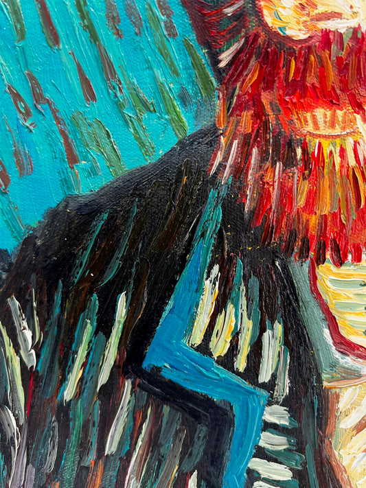 Dipinto a olio dipinto a mano in stile Van Gogh: Autoritratto con l'asinello (60,5 × 50,5 cm) – Tela arrotolata
