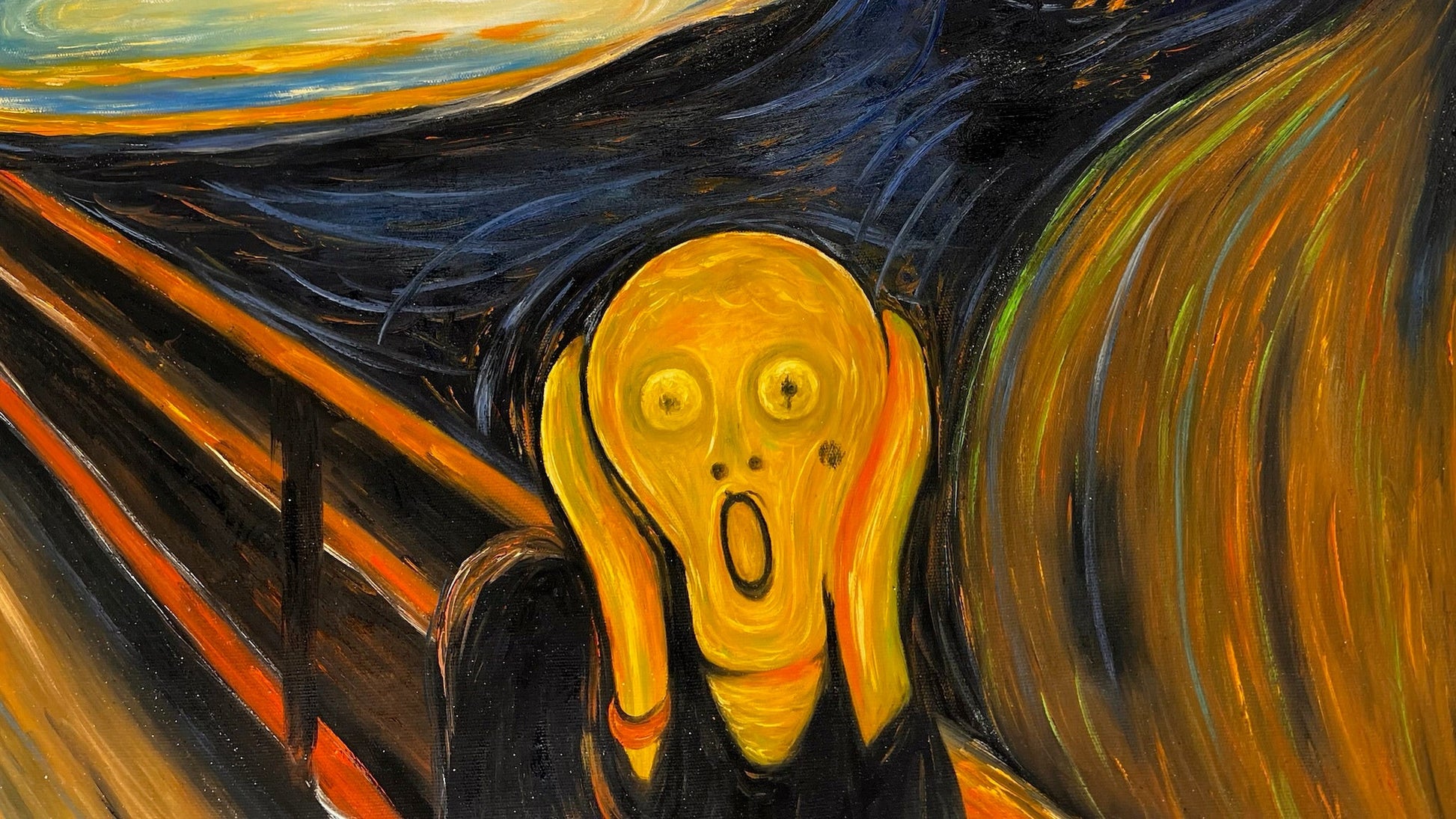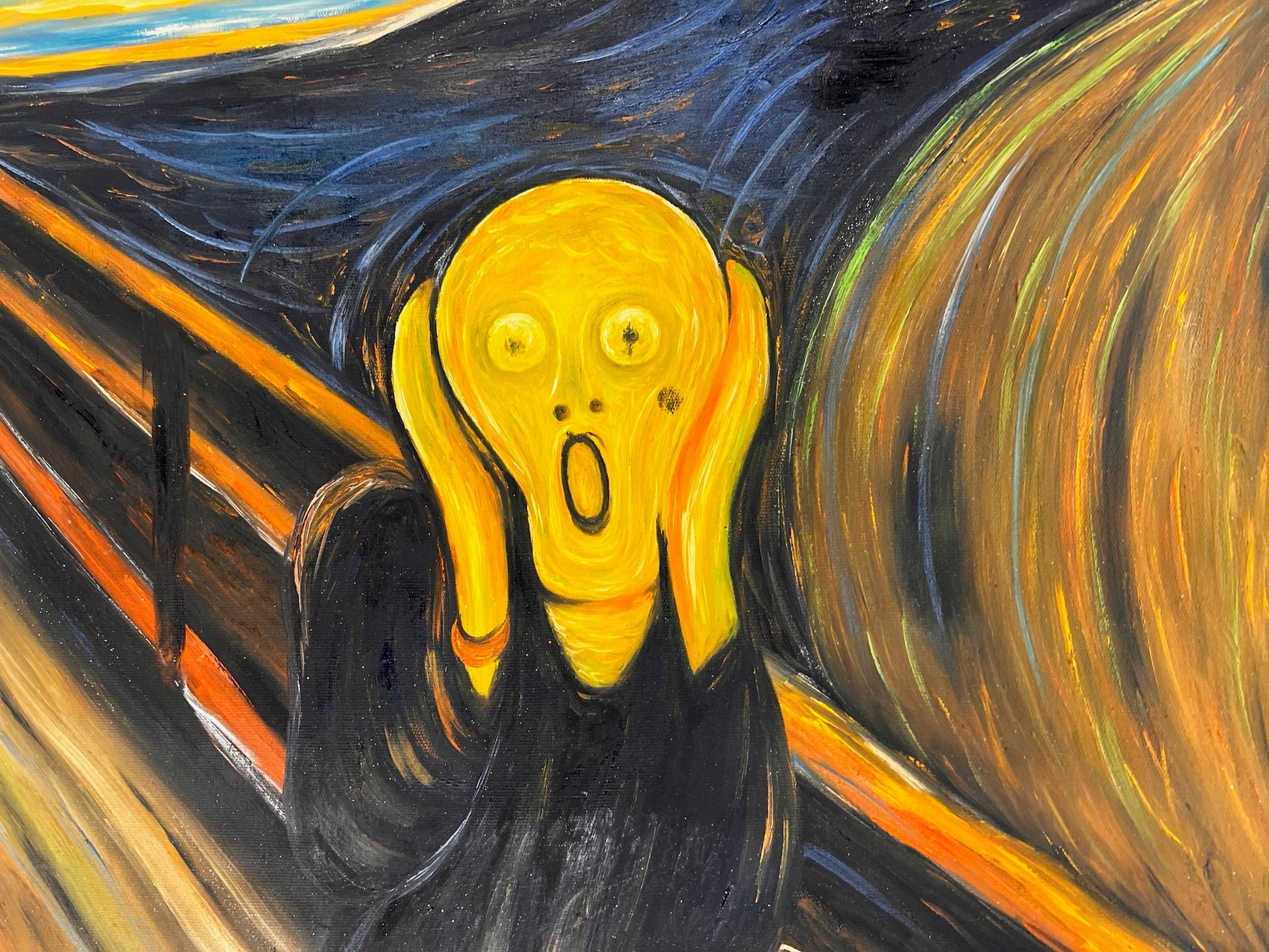 L'Urlo (di Edvard Munch) – Olio su tela espressionista dipinto a mano (consegnato arrotolato)
