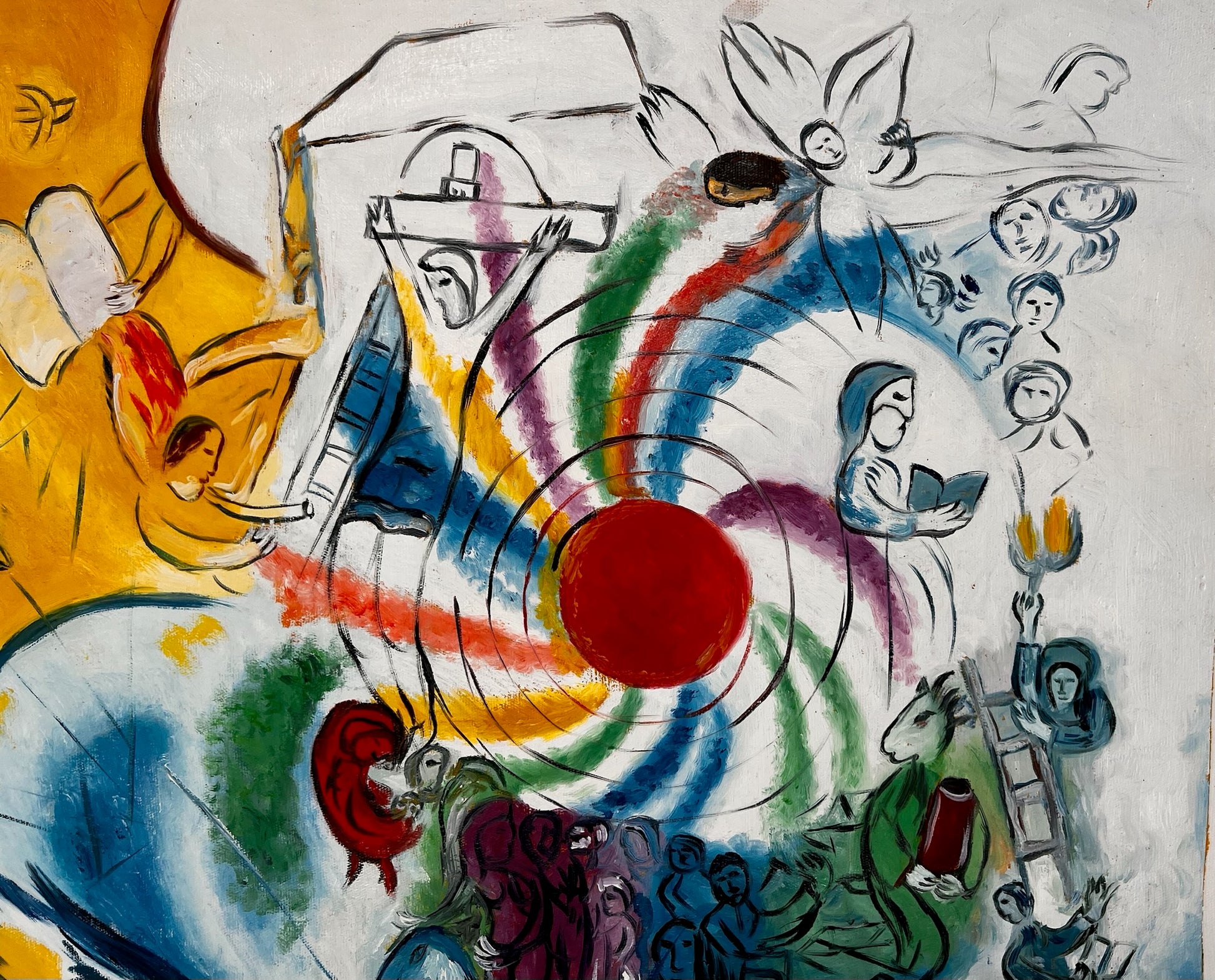 Marc Chagall (1887–1985) è stato un artista russo-francese, noto per il suo stile unico che combina elementi di modernismo, cubismo e fauvismo. Le sue opere sono caratterizzate da colori vivaci, temi surreali e una profonda simbolica spirituale. L'opera di Chagall comprende dipinti, vetrate e affreschi, e la sua arte è apprezzata in tutto il mondo per la sua originalità e profondità.