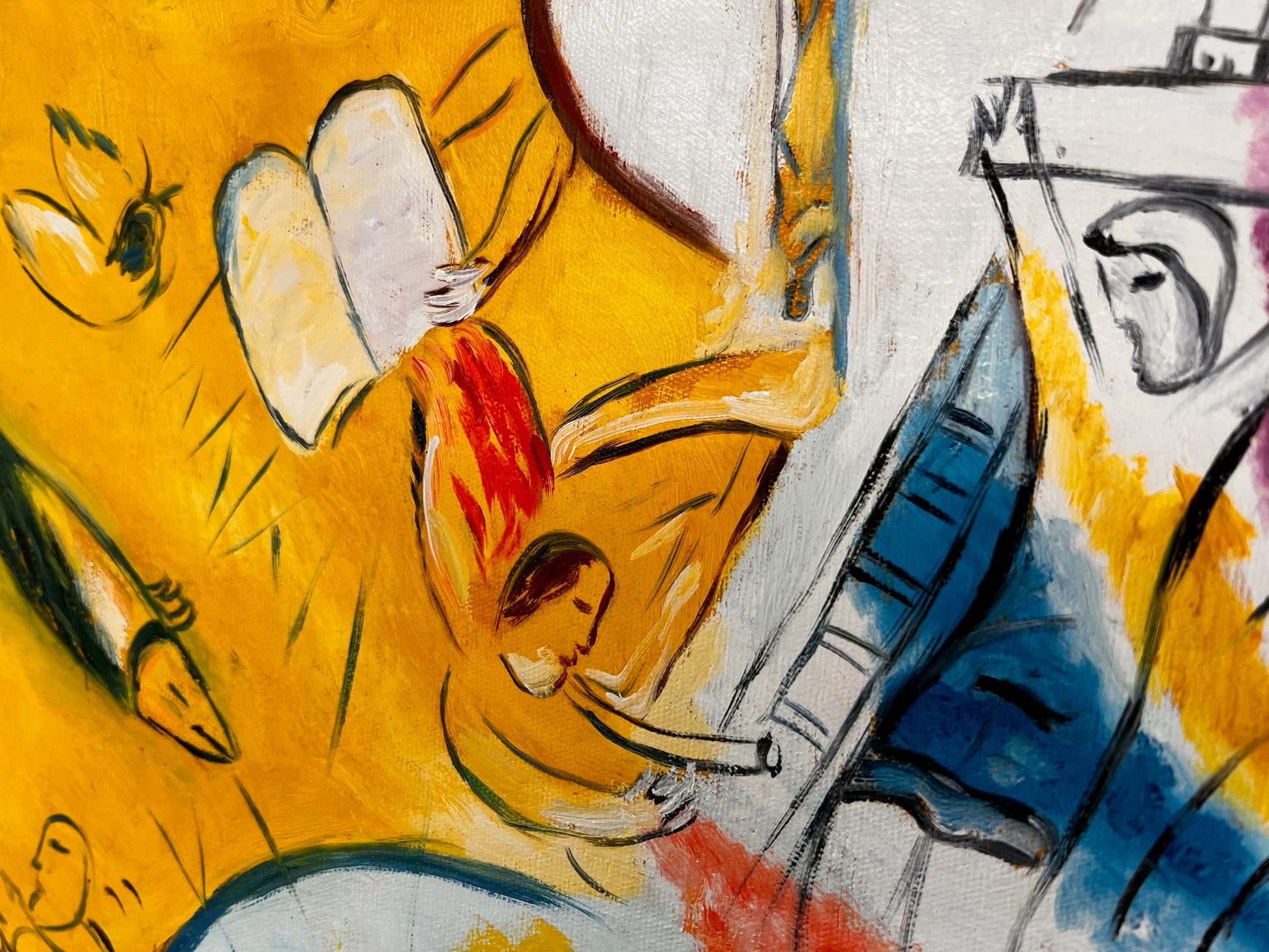 La replica dipinta a mano cattura l'essenza dell'opera di Chagall, con colori vivaci e dettagli sottili che raccontano una storia di immaginazione ed emozione. Quest'opera è un'aggiunta meravigliosa per gli amanti dell'arte che apprezzano il modernismo e il simbolismo spirituale.
