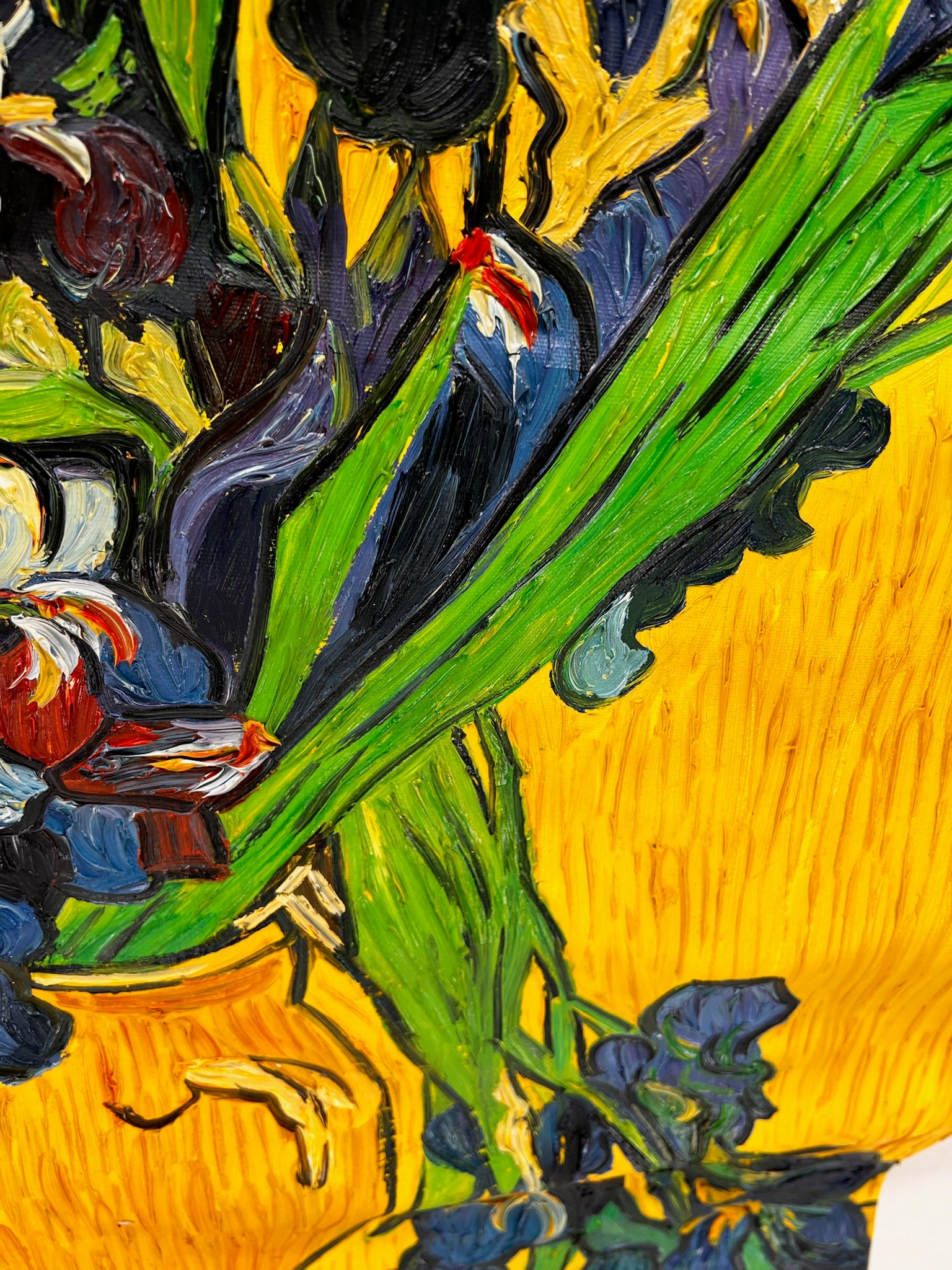 Vincent van Gogh – Vaso con iris – Pittura ad olio post-impressionista dipinta a mano su tela (92 × 73,5 cm)