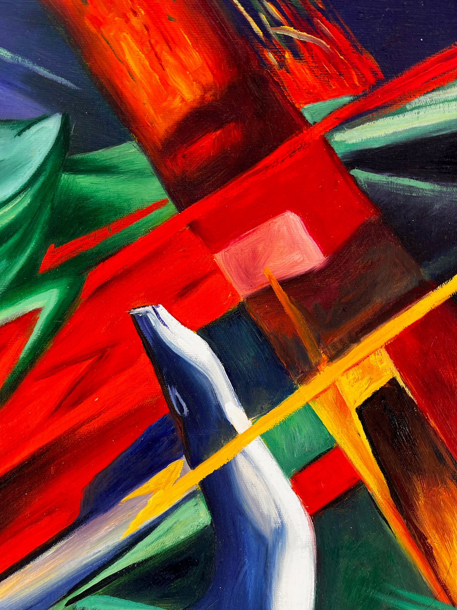 Questa replica dipinta a mano riproduce la vivace tavolozza e le forme astratte di Marc, rendendola un'aggiunta sorprendente e stimolante a qualsiasi collezione.